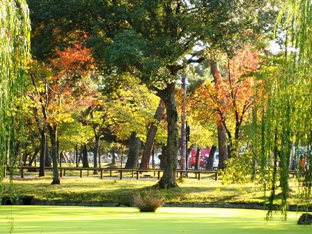 奈良県立美術館の横を通ります。みとりい池(みどり池)