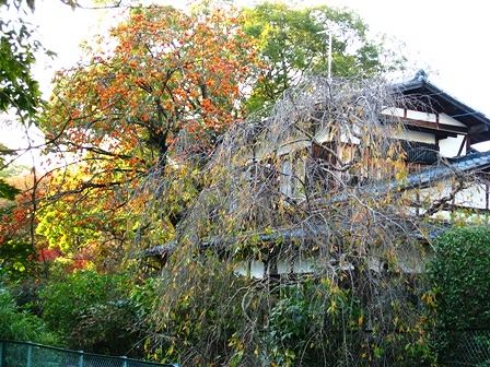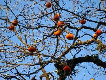 依水園の入り口付近の柿の木 葉っぱは全部落ちて実だけ残ってます。