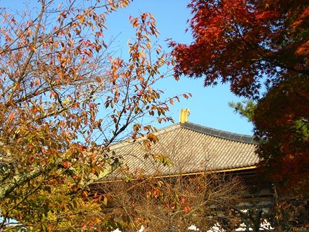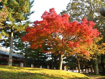 東大寺西塔跡付近 真っ赤に色付いた紅葉