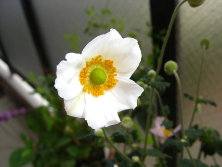 かなり前から蕾があったのですが、やっと秋明菊が咲きました。