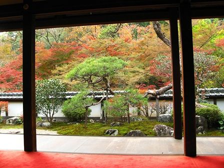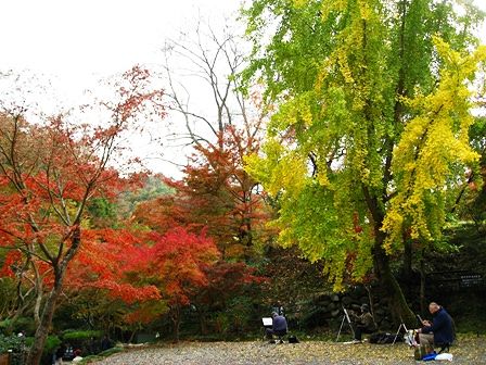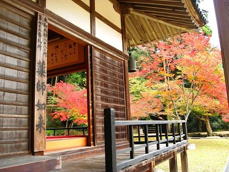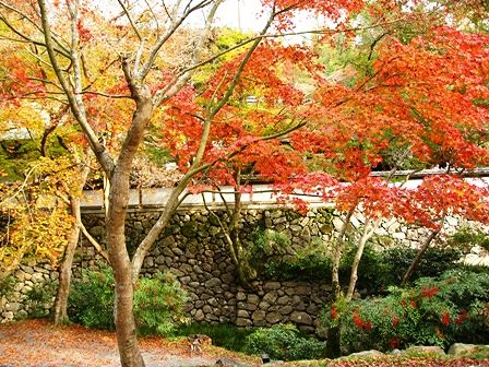 福寿院の紅葉がきれいですね。川沿いの紅葉だと借景にできる建物がありません。
