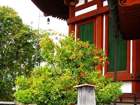 南円堂の右近の橘 実が一杯なってます。