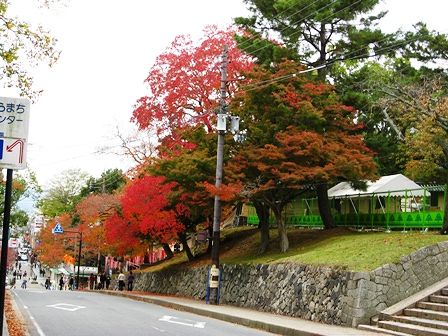 興福寺の下の土産物屋さん街の方も紅葉 真っ赤な木がありますね。