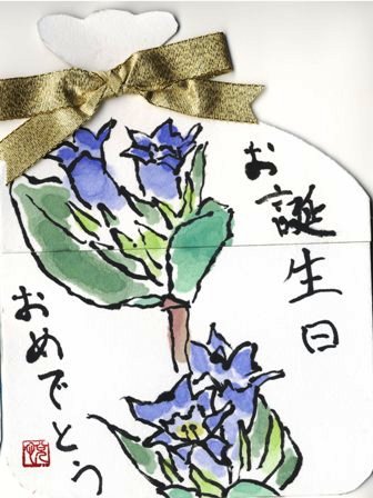 題材はリンドウの花です。10月は妹の誕生月でしたので、妹に送りました。