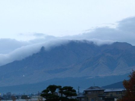このような曇り空で、阿蘇山にはガスがかかっていました。