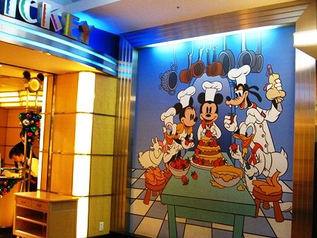 ここでは、ミッキーをはじめ、ディズニーのキャラクター達がテーブルに来てくれて、