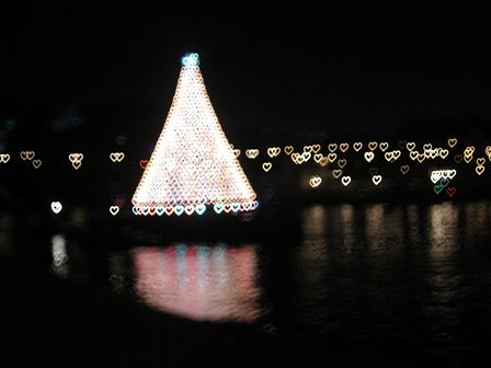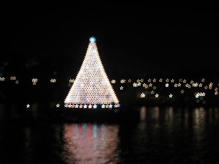 もうすっかり夜です。海の上に大きなツリーが浮かんでいます。