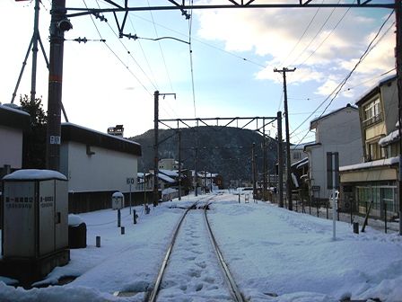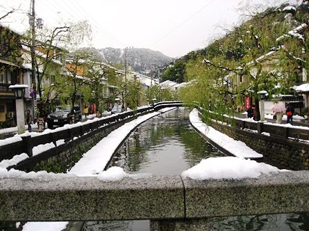 雪と温泉街