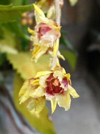 それで、一番下のサクラボケの花、初め「サクランボ」と読んでしまい