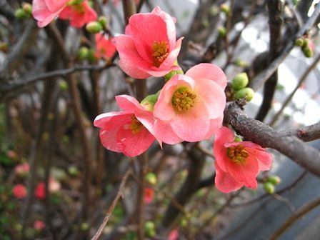 ボケの花も咲き出して、寒い寒いと首を縮めている間に 花は次々と咲いていくようですね。
