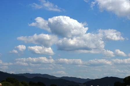 雲の写真、よく見ると鳥の様にも見えませんか?空の蒼と雲の白がマッチして綺麗。。