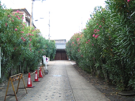 さて、本日の写真ですが、うちの近所の蓮長寺と言う特にそんなに有名でもない小さなお寺があるんですが、その門前にピンクの可愛い花が咲いていたので、その写真を先日撮りに行きました。遠くから見ると百日紅に見えたのですが、近くで見ると夾竹桃(きょうちくとう)でした。参道の両側にズラッと並んで並木道になっているのが素敵です。アップで見ると可愛いお花ですね。