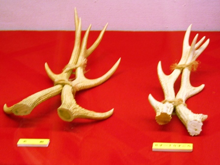 (左)大人の鹿の角 (右)10歳位の鹿の角
