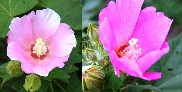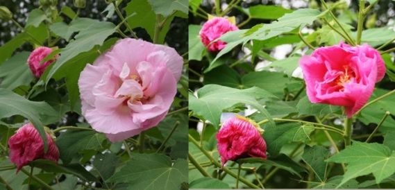 さて、これで終わりではありません。明日アップしようと思ったんですが、一機にアップしちゃいます。鶴見緑地公園には、マイブームの酔芙蓉が咲いているのです。この日到着したのは、12時。まず、そこへ直行して写真を撮りました。白色が少し薄いピンクに変わった所と言う感じで、全体的に淡いピンク色でした。そして、頑張ってあちこち回って、帰る直前の4時半にもう一度行って撮影しました。かなり濃いピンクでした。でも、真っ赤と言う感じではありませんでした。ただ4時半の地点でもうすでに閉じ始めていました。ですから、真っ赤な状態で開いてるのって見れないと言う事でしょうね。その時は閉じてしまっているようですから。