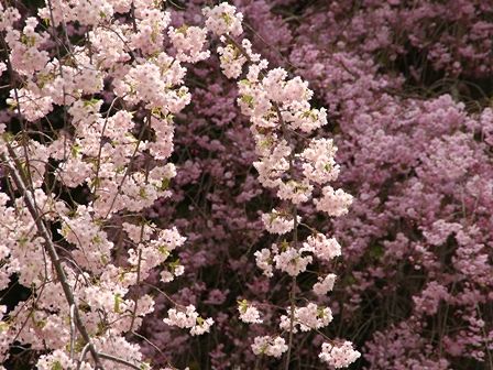 八重桜に紅枝垂れ桜に