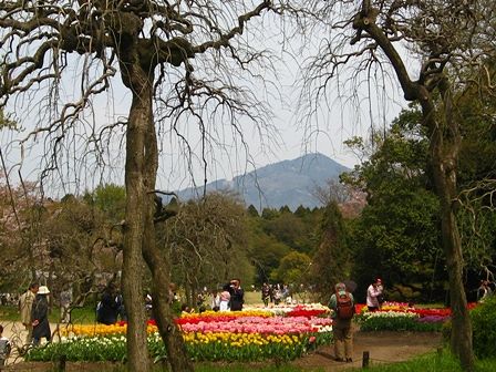 明日香でも休耕田を利用してチューリップ畑にしていましたが、こういうのは公園の方が似合いますね。