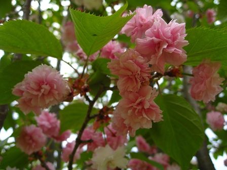 八重桜が咲いていました。もしかして、奈良八重桜?名札がなかったんです。