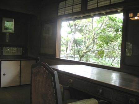立派なお家が立ち並ぶ中、ありました。もうこの前は何回も通ってるのですが、入るのは初めてです。入場料は350円です。門を潜り、すぐ左手にお庭があります。百日紅もまだ咲いていました。小さな池もありました。そして、書斎が見えました。机とイスがあり、そこからはお庭が見える窓があります。次女が「ここやったら、仕事がはかどるやろなあ、良いなあ。」って言うので、思わず、あんたは小説家か!って言いたくなりましたが、まあ、勉強がはかどると言う意味だったのでしょう。