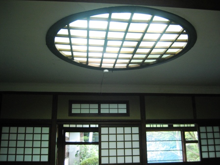 続いて、茶室があり、子供部屋があり、婦人のお部屋がありました。奥さんの専用のお部屋なんて良いなあ・・・。そして、サンルームがありました。ここは実際に入って私達もくつろげるようになっています。お庭が見え、天上からは光が差し、最高のお部屋です。サンルームの写真も撮ったのですが、上手く撮れていませんでしたが、その隣の食堂もサンルームになっていましたので、そちらの写真を載せます。