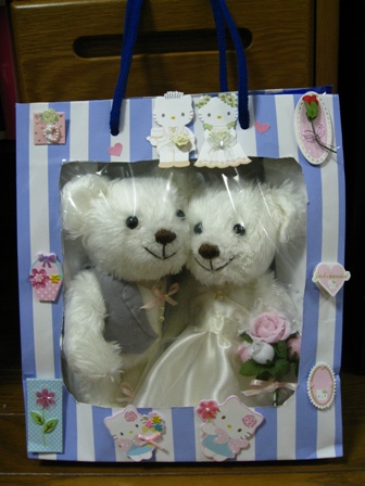 こんな素敵な手づくりのプレゼントの「ウェディングベア」をどんなにか喜ばれることでしょう!