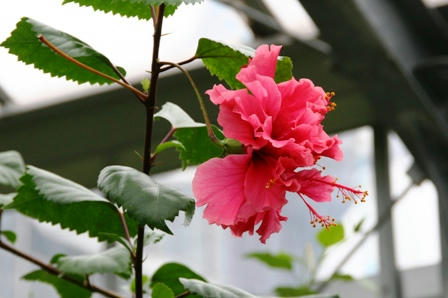 ピンクのハイビスカスです。ちょっと和風な感じですね。