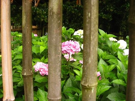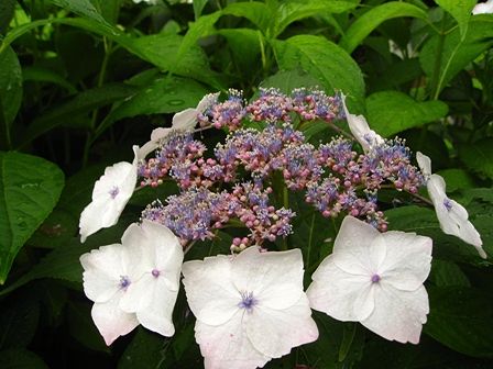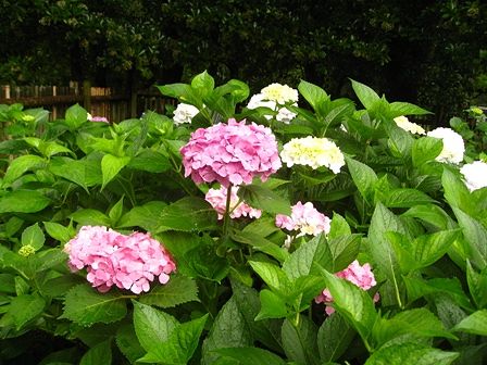 まだ色の付いてないのが多いなあと思ったら、白い品種のアジサイのようです。