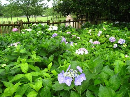 奈良公園のアジサイ 奈良県新公会堂ではありません。