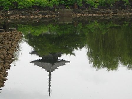 荒池の水面に映る五重塔でした。ちょっと場所がずれると全く見えないんですよ。