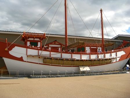 JR奈良からのシャトルバスを降りて、一番に目に付いたのが、遣唐使船です。