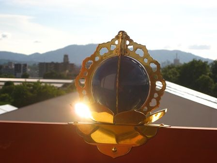 建物の飾りに夕日が当たって、輝いていました。