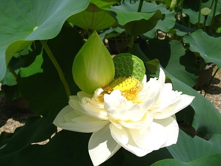 純白のハス、良いですねえ。