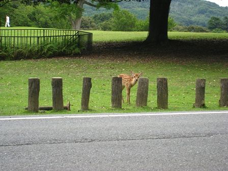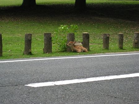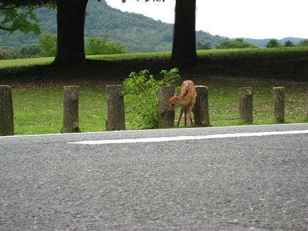 飛火野の道路沿いにバンビちゃんが。