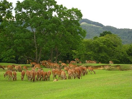 飛火野の集団の鹿。別に鹿寄せの行事をやってる訳ではなく、普段の様子です。