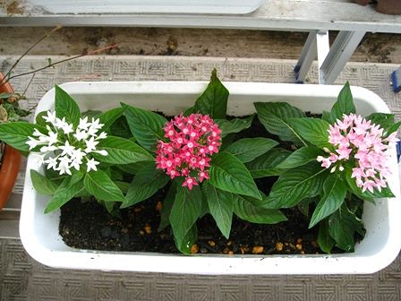 あるお花が枯れてしまったので、そこにペンタススターを3色植えました。