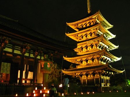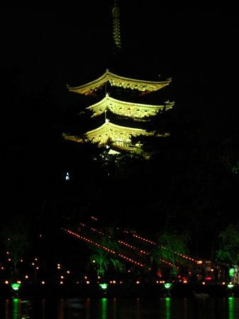 ズームにすると五重塔の下の方に五十二段の灯りが見えます。
