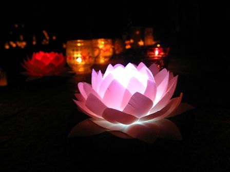 ピンクの蓮の灯籠は最高ですね。