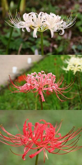 白、ピンク、赤の彼岸花