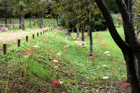 綺麗な公園に彼岸花が色を添えます。