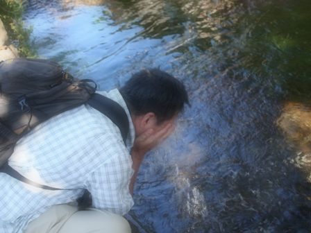 その冷たい水で顔を洗ってます。(ちょっとぼかしを入れてます。)