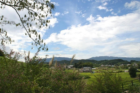 それとまだピンクと白の百日紅も頑張って咲いていました。ここは、街中の公園と違って、もう周りの田園や竹林や山と溶け込んでいて、大自然の中の公園と言う感じで、とても素晴らしい公園です。