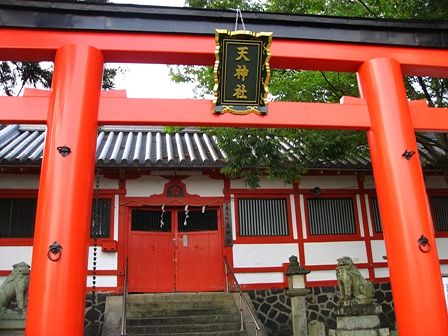 坂を登り、天神社へ。もう門が閉まってました。