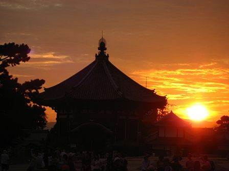 興福寺境内に行くと南円堂の方が夕焼けで真っ赤です。