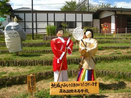 飛鳥駅の前には、案山子が少し飾られていました。