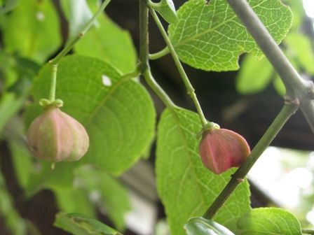 本堂の前にマユミの実が。少し赤くなりかけています。