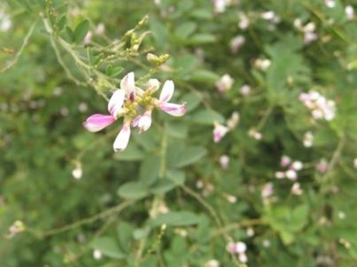 ピンクと白の混じった萩です。