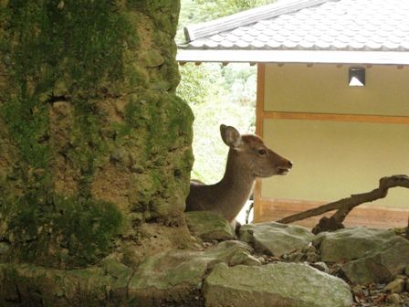 奈良公園の鹿さん、土塀から顔だけが見えてるのが、何か可愛かったです。