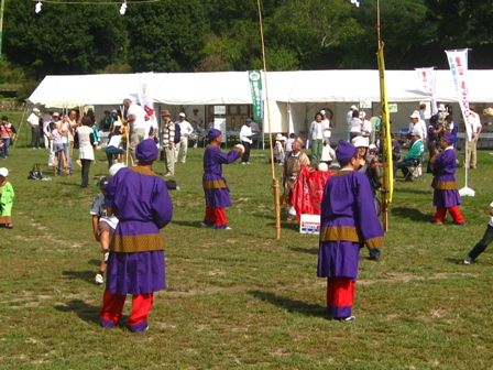 石舞台の広場で、蹴鞠の体験をやってました。