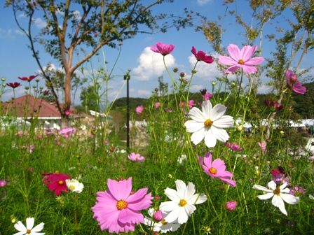 青空の下のコスモスはやっぱり素敵です。