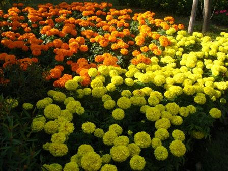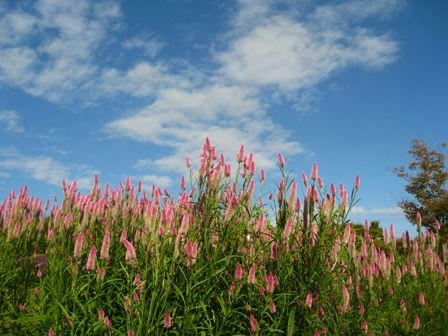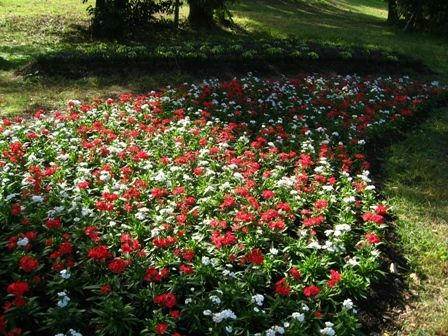 インパチェンスの赤色と白色、こんな風に群生だと見事ですね。