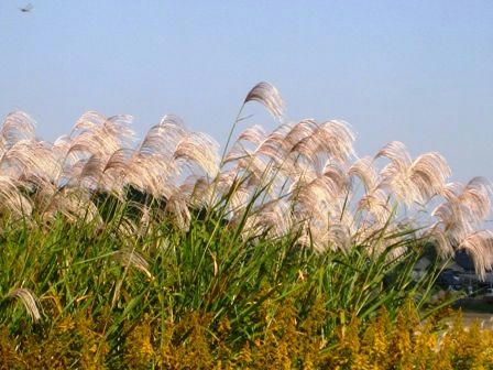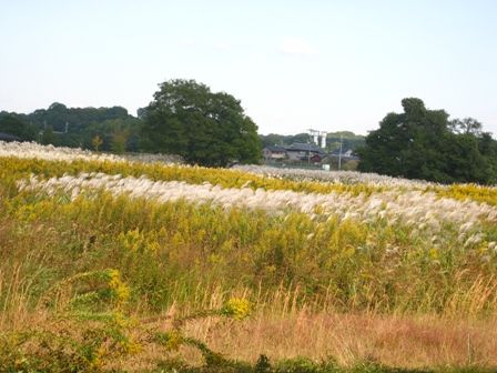ススキとセイタカアワダチソウが交互に生えてます。